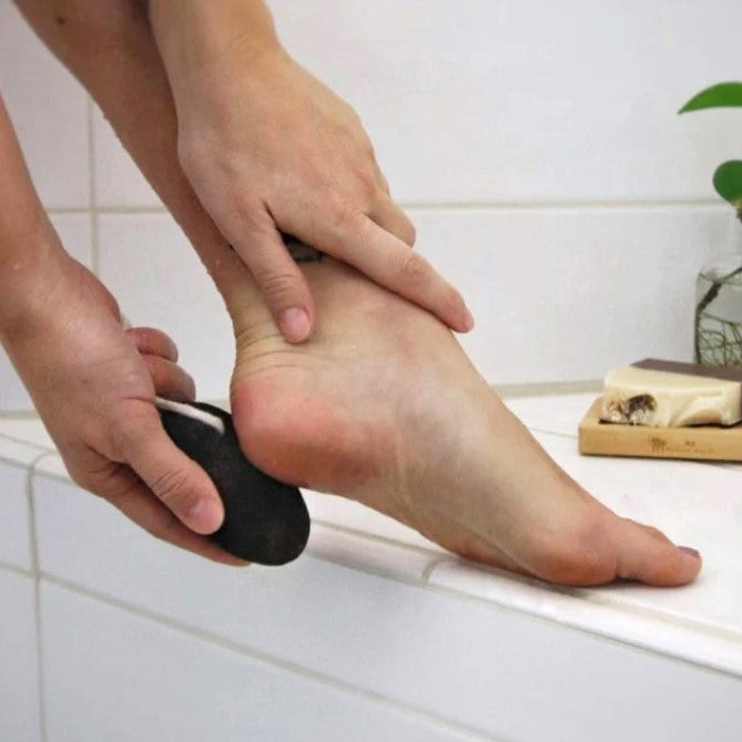 How to Use on Feet: Soak feet for a few minutes or use after a shower when skin is soft. Wet stone and scrub rough areas for a few minutes with light pressure. Focus on heels, sides of your toes, and other areas where dry skin or callouses tend to build up. Moisturize your feet after use.
